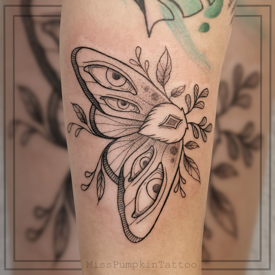 Ich arbeite gerne im Stil "Fineline" und "Dotwork" und bevorzuge Schwarz mit maximal ein paar Farbakzenten. Ich liebe Katzen, Dinos, mystische Tiere und zarte florale Muster. Darüber hinaus beinhalten meine Motive auch gerne mal ein Paar extra Augen. Ich würde sagen meine Motive lassen sich ganz gut als "witchy", "etwas düster" und trotzdem "irgendwie niedlich" bezeichnen.